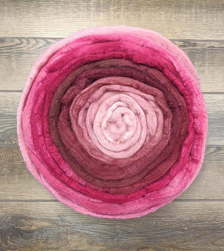 We start with 6 generous ounces of premium fiber and add a perfect bouquet of colors to make a spinning or felting braid that is a dramatic experience for the senses. The Braid of Gradients braids each have 15 subtle color changes!